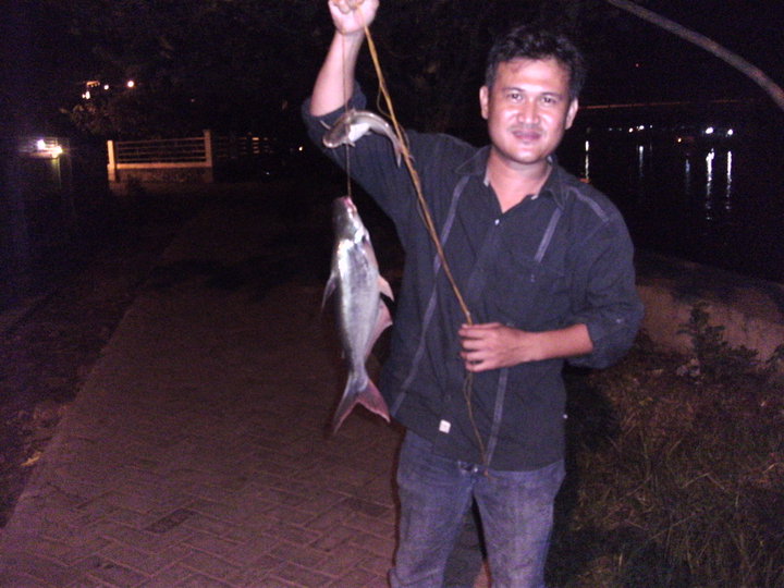 Yaitu dengan pancing tanpa kail atau pancing jaring.